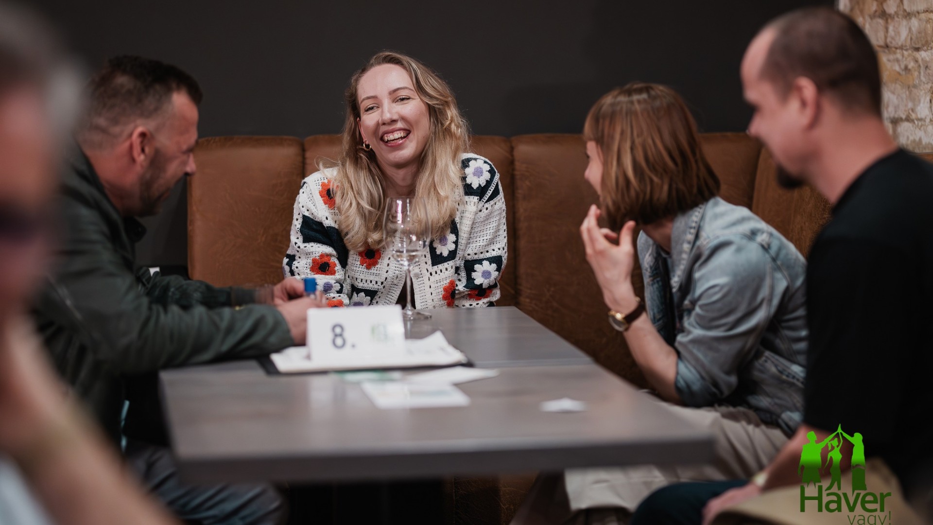 Mindenki helyét – így a Tiédet is – négyfős asztalokhoz sorsoljuk, és 30 percig hagyjuk kibontakozni a véletlen szülte társaságokat.