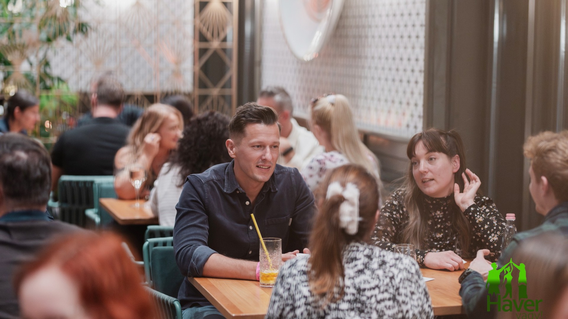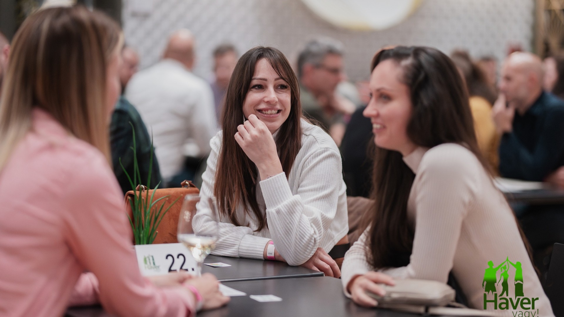 Mindenki helyét – így a Tiédet is – négyfős asztalokhoz sorsoljuk, és 30 percig hagyjuk kibontakozni a véletlen szülte társaságokat